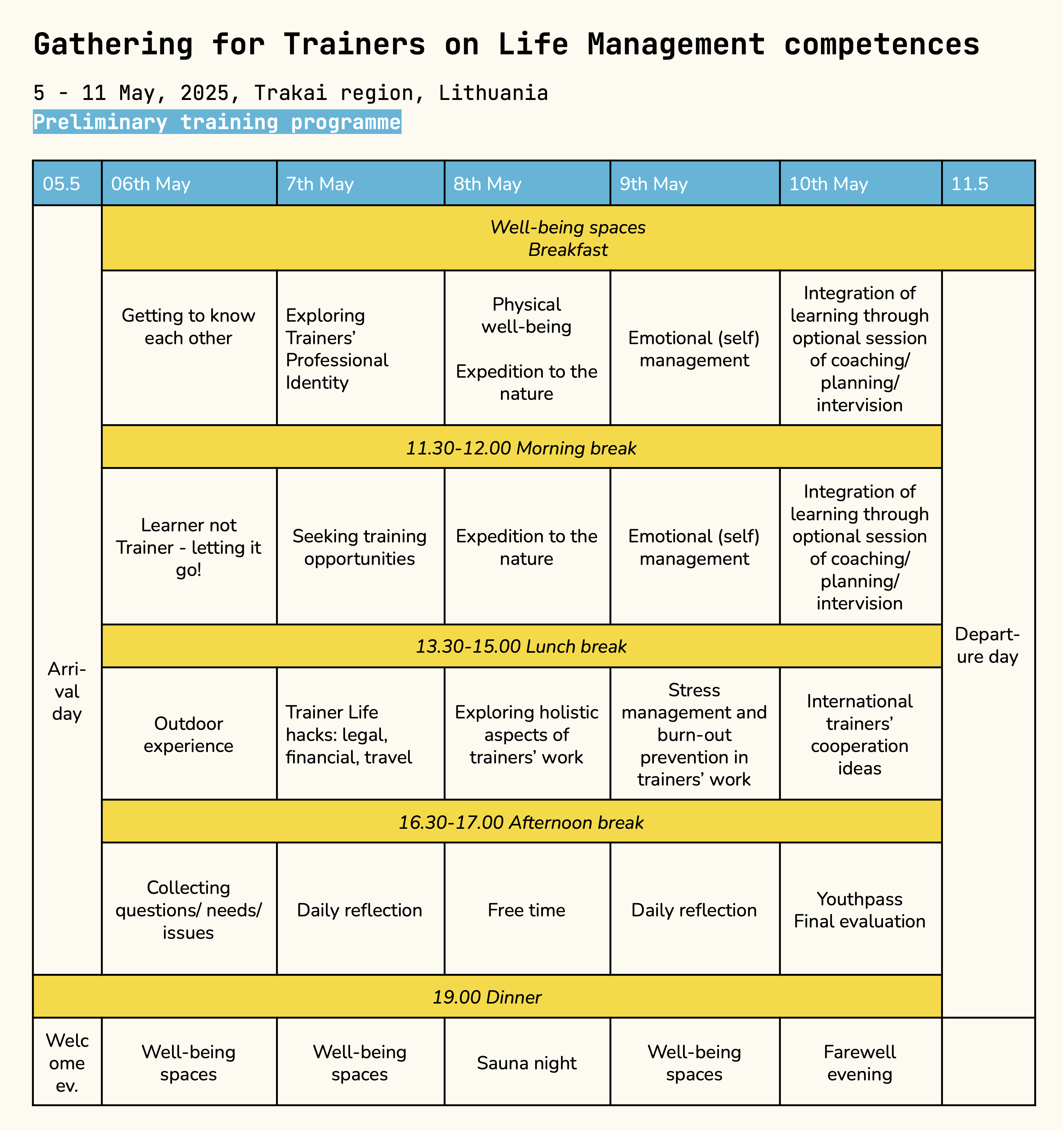 This event offers a dedicated space to exchange best practices, uncover life hacks, and co-develop tools for managing the often-overlooked aspects of a trainer’s journey. Drawing from the collective wisdom of the trainers’ community, we will explore practical strategies through peer learning, intervention, coaching, reflection, and hands-on activities outdoors and indoors.